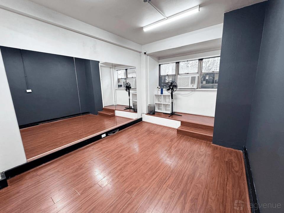 Studio 8 (located on the lower level of the building) is equipped with full mirrors, a Bluetooth speaker, and fans. It has access to storage and a bathroom.