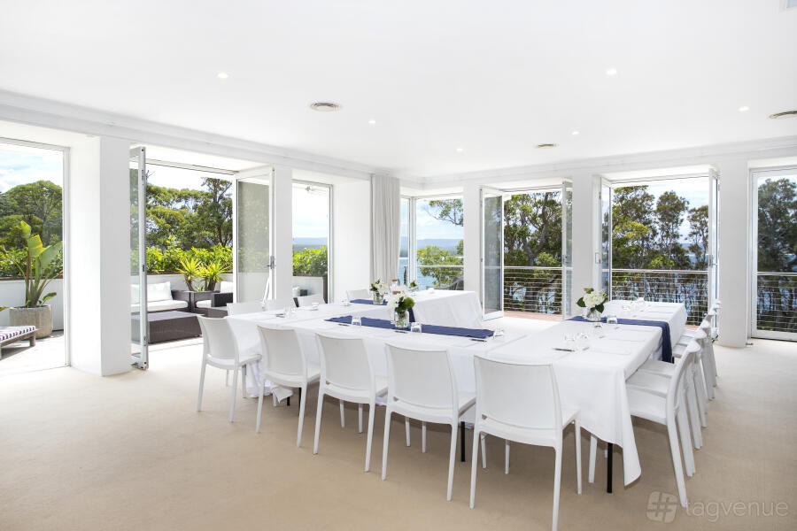 Stunning ocean views from an expansive deck, exclusive media room, and ample space make for a smooth conferencing experience.