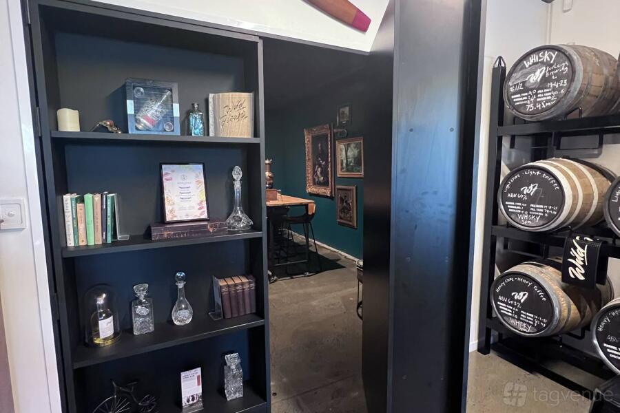 The heart of the space is adorned with authentic whisky barrels, which not only enhance the ambience but also serve as distinctive conversation pieces. These handcrafted barrels, combined with dim lighting and exposed brick, create an environment that feels both exclusive and inviting—perfect for those looking to host a memorable event with character and style.