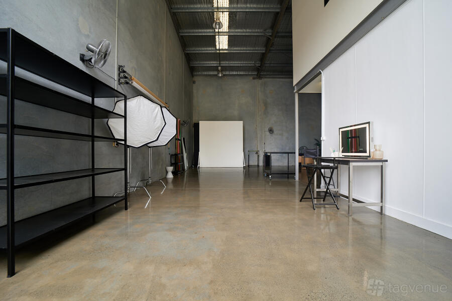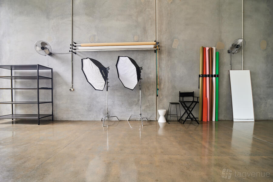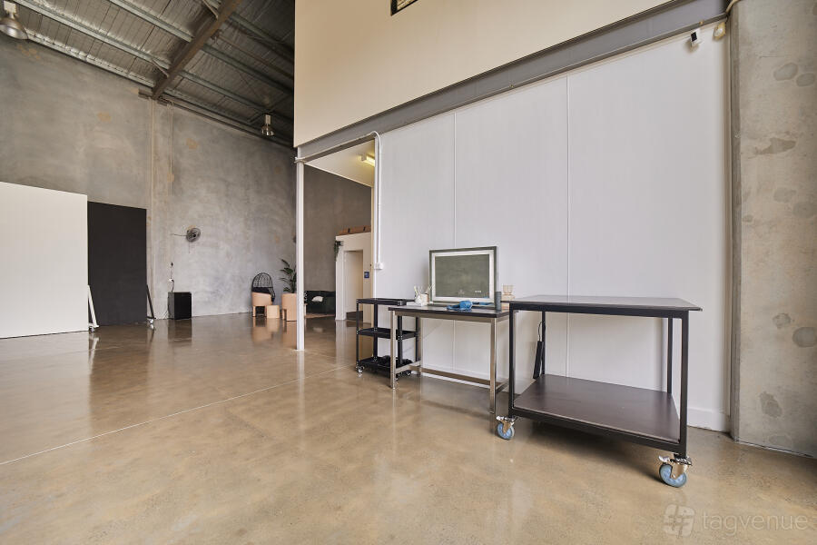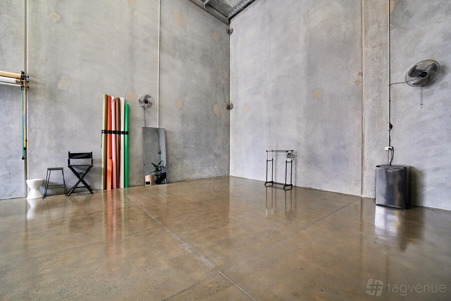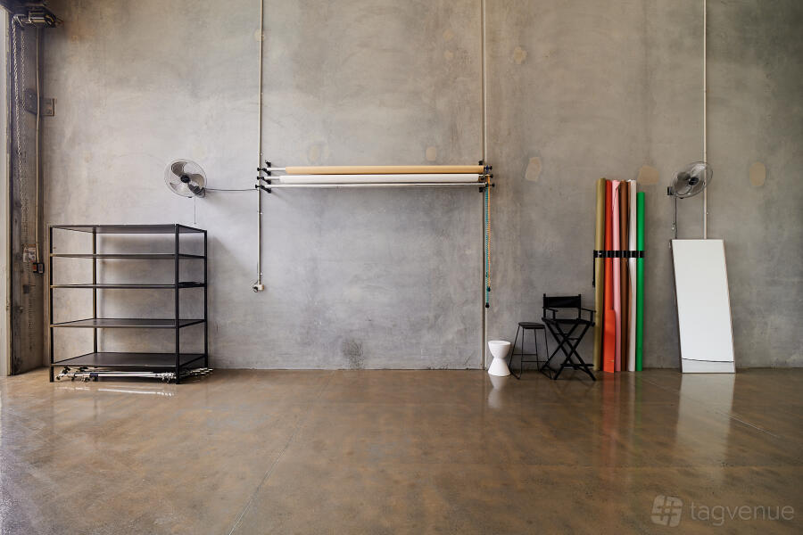 Our studio provides a flexible and fully equipped facility perfect for video and photo shoots. With raw concrete walls, sealed textured cement floors and plenty of natural light.