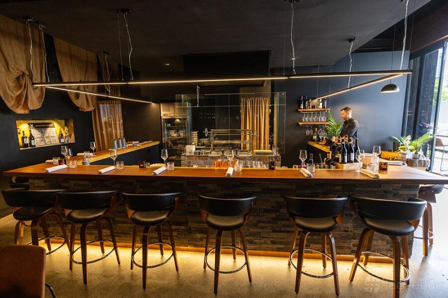 Seating arrangements are designed to cater to various preferences. Your guests can choose from intimate tables, where you can enjoy a private conversation, a long bar, perfect for engaging with our sommelier, or larger tables that provide ample space for group gatherings. The dim lights, carefully curated to perfection, cast a warm and inviting glow, adding to the overall sense of intimacy.