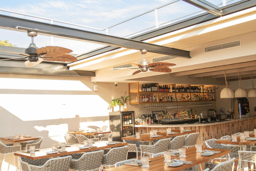 Guests are able to dine under blue skies by day, and stars by night, with breezes flowing from the retracting roof.