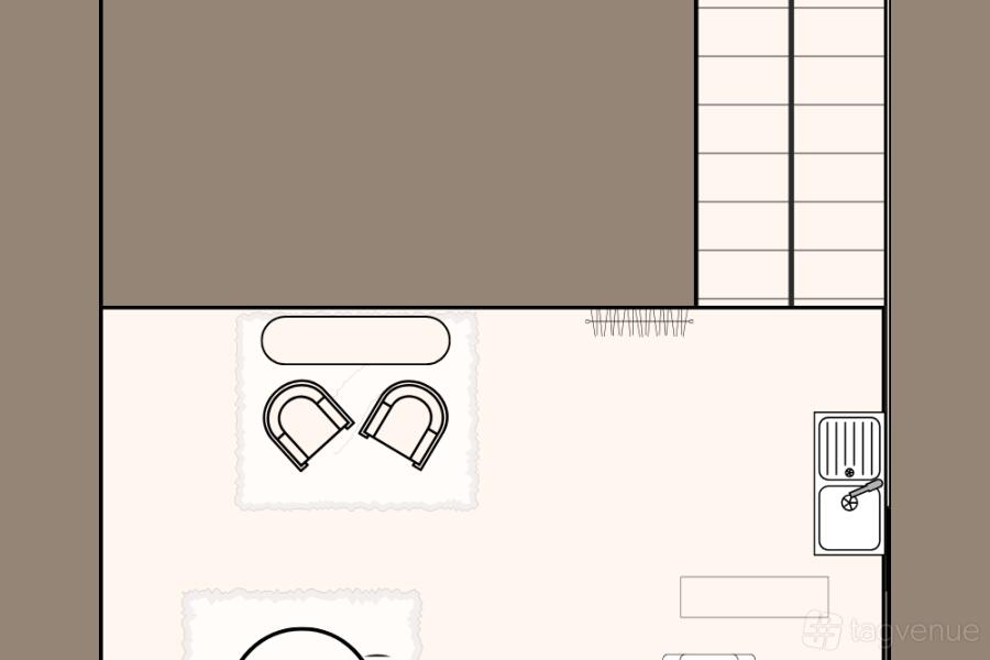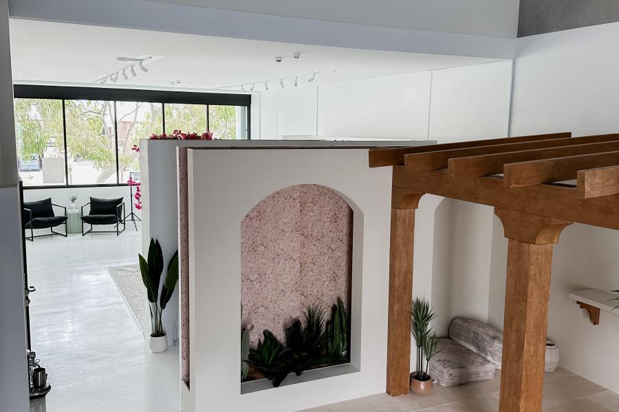 The mezzanine area has beautiful, contemporary furniture pieces, ideal for lifestyle or branding shoots.