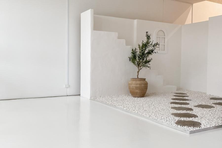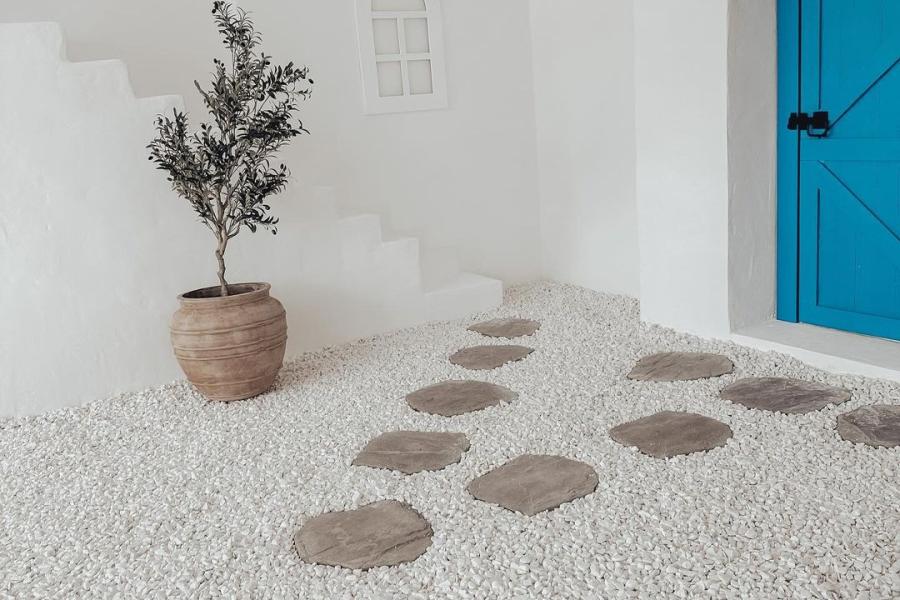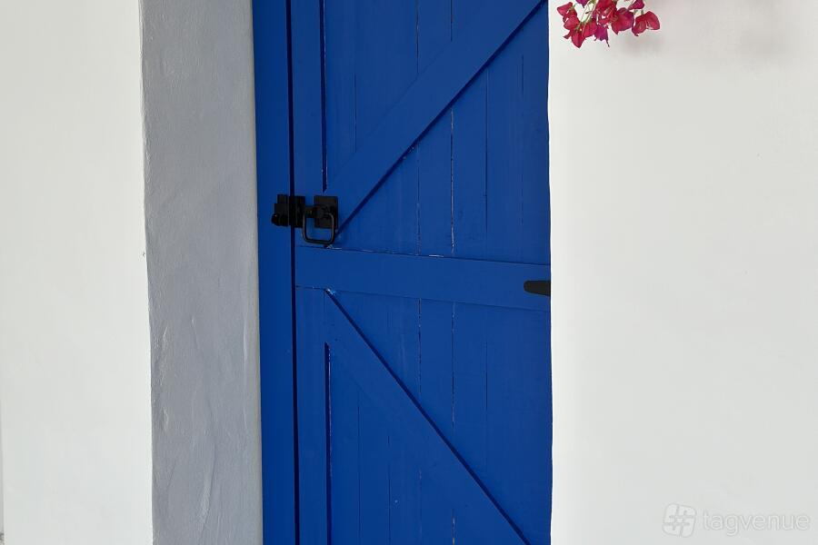 We have designed and built our Canggu Villa with neutral tones and natural textures, and our white-on-white Santorini set with complete with the famous blue door and bougainvillea.