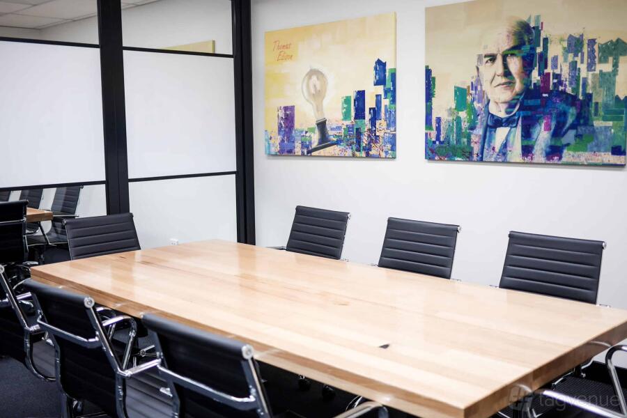 Each room is equipped with essential amenities, including secured high-speed Wi-Fi, a noise reduction system, whiteboards, and a 65" 4K LED smart TV for presentations. The venue also includes kitchen, bathroom, and shower facilities, supporting longer meetings or workdays. Privacy is a key focus—rooms feature privacy vinyl to prevent outside viewing during use, maintaining client confidentiality.