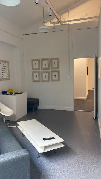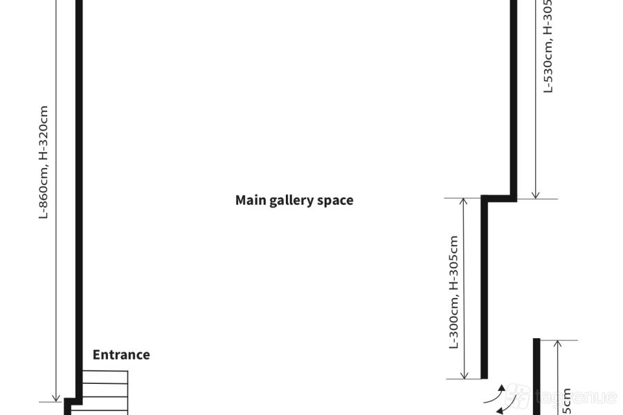 The gallery includes two large spaces with high ceilings and immense natural light throughout the day. Space one is the main gallery space which is 100 sqm with light tracks and two different lighting systems (track lights and spotlights) and the second space is 20 sqm with a sofa, T.V., and a table.