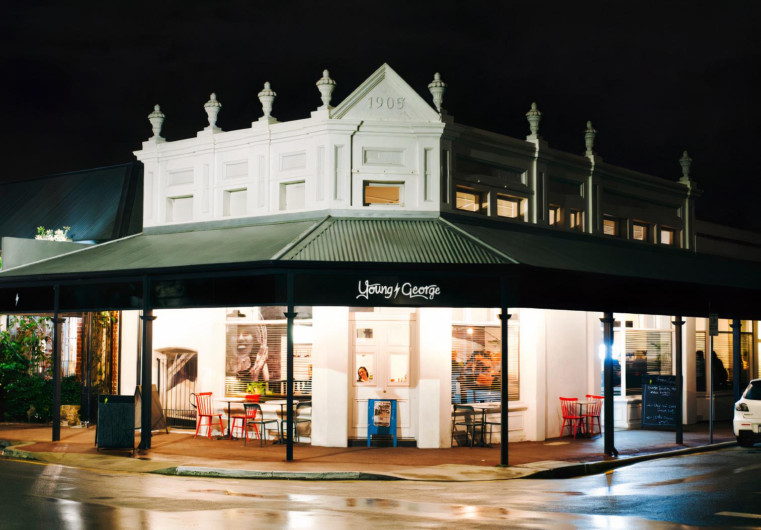 Young George is located at 48 George Street, in the Fremantle, Perth district of East Fremantle.