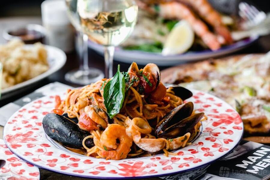 Guests can enjoy a variety of dishes, including traditional pizzas, freshly made pasta, and succulent seafood, all crafted from high-quality ingredients. Each meal blends Italian tradition with modern touches, ensuring a dining experience that is both satisfying and memorable.