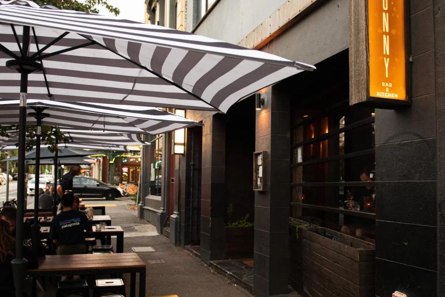 In addition to the bar and dining area, Bonny also features a footpath alfresco area on iconic Brunswick St and a sunny beer garden out back with a glass ceiling (pooch-friendly).
