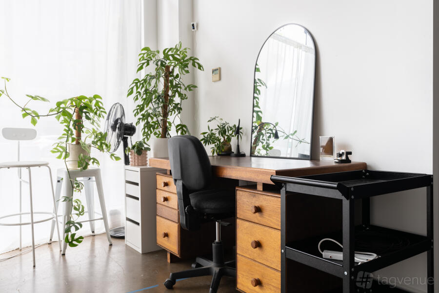 Along with our creative spaces, Kindred Cameras also has a shared 'green room', with toilets, a kitchen, lounge area, change room and hair and makeup station.