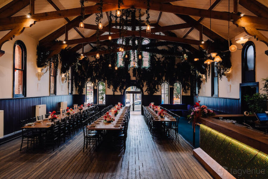 Being an old hall, the space is open and flexible so you can configure it to suit your event, whether that be a sit down dinner or cocktail party. easily accessible and with a multitude of parking and public transport options nearby.