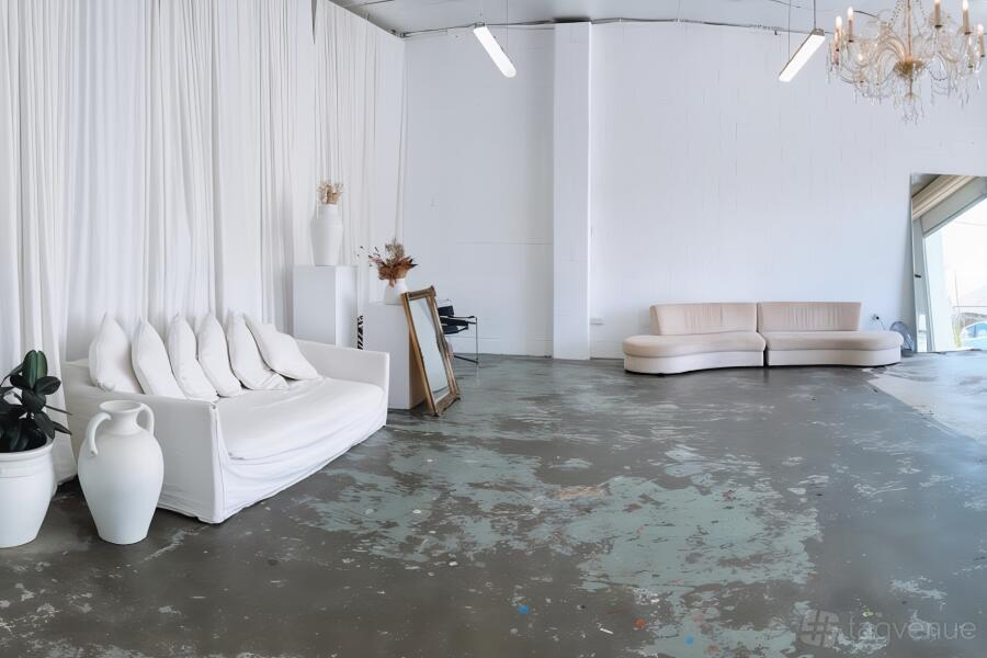 Equipped with essential amenities, the studio includes air conditioning, a kitchenette, and bathroom facilities that can serve as a changing room. Guests can access various props, couches, mirrors, and clothing racks, along with portable backdrops and basic photography lighting available on request.