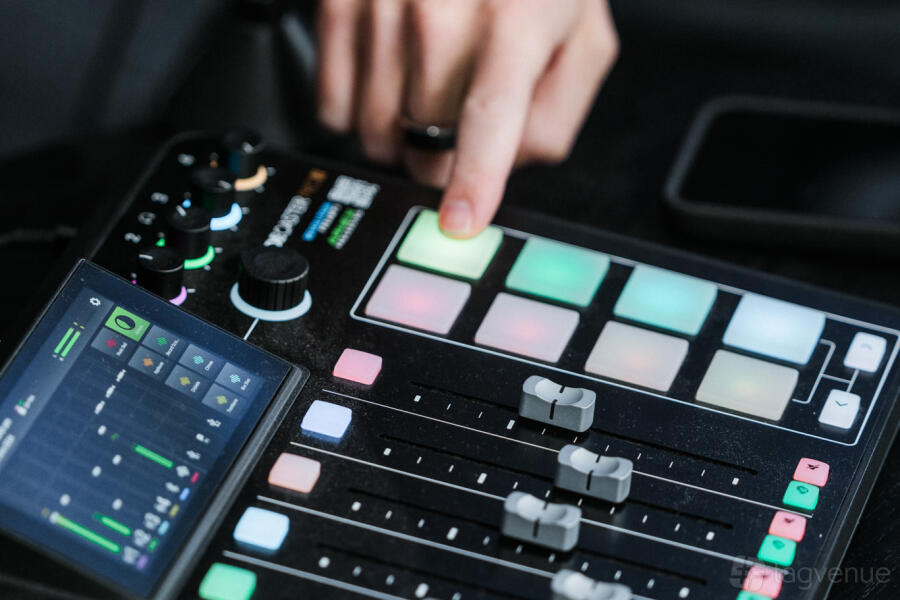 Podcast Studio: With high-end audio equipment, the podcast studio features Shure SM7B microphones, Rode NTH-100 headphones, and a RodeCaster Pro 2 mixer. A complete production lighting suite accompanies the setup to provide a professional setting for podcast recording.