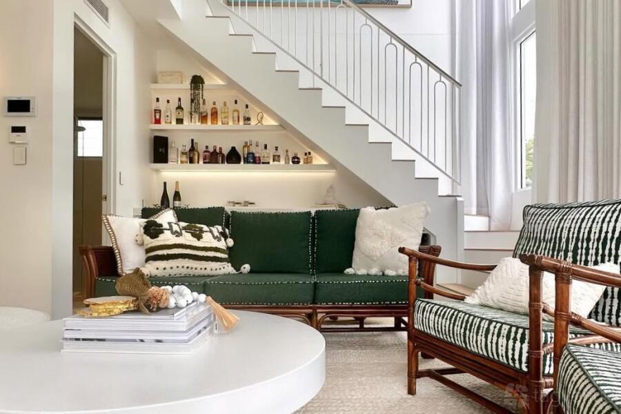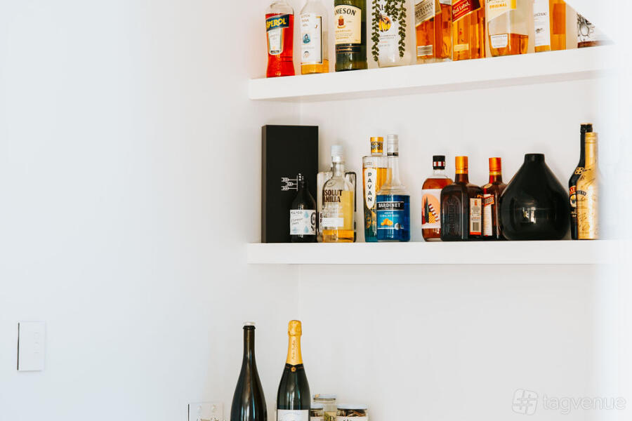 - Luxurious bathroom, bar area, and adaptable kitchenette/living space.