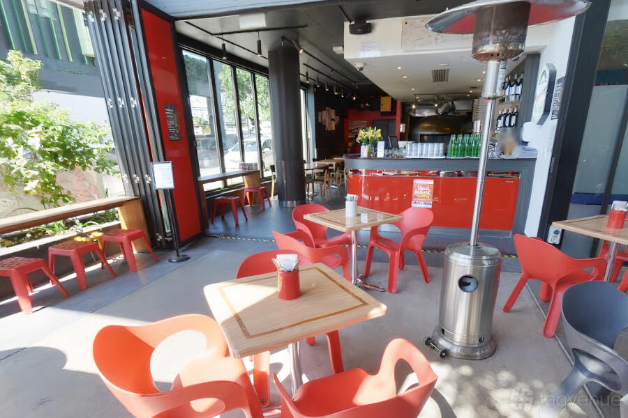 The majority of our dining space is al fresco, offering guests the opportunity to dine amidst the fresh air and lively atmosphere. Alternatively, for those seeking a more intimate setting, indoor seating is available, ideal for cozy gatherings with friends.
