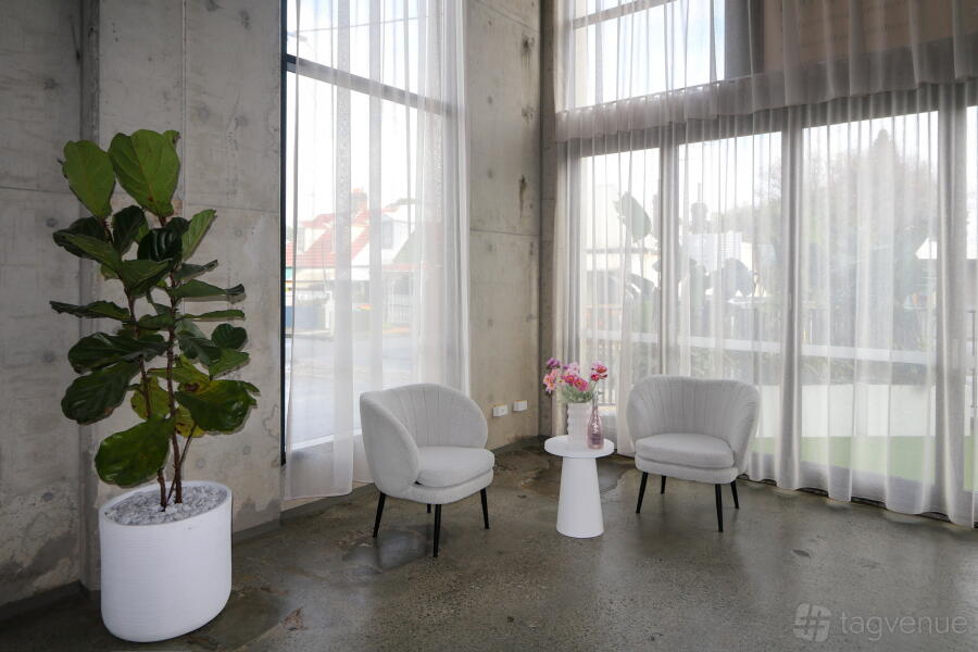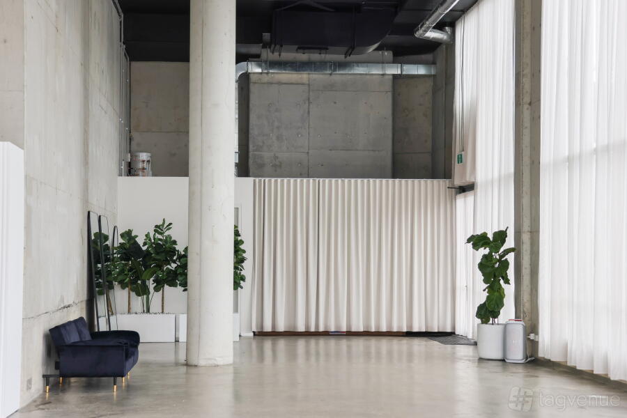 The venue fits 80 guests and features concrete floors, sheer draping, large windows, and easy bump-in/out. It’s camera-ready, adaptable, and located near parking and public transport.