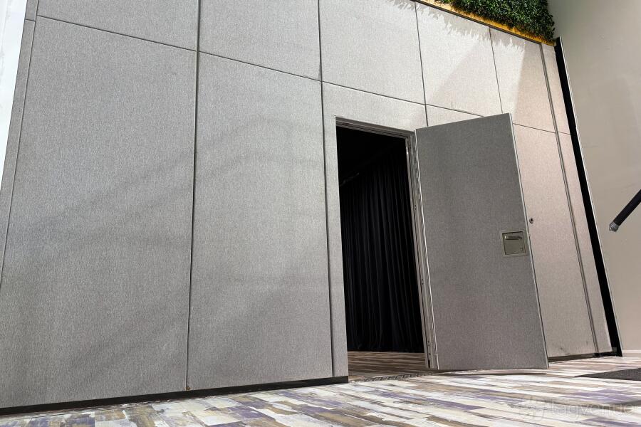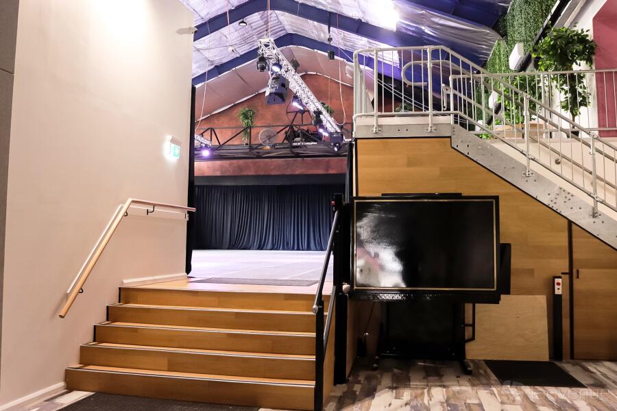 Studio B (102 sqm) offers sprung flooring and foldable walls, opening to a 30m foyer space ideal for receptions or breakouts.