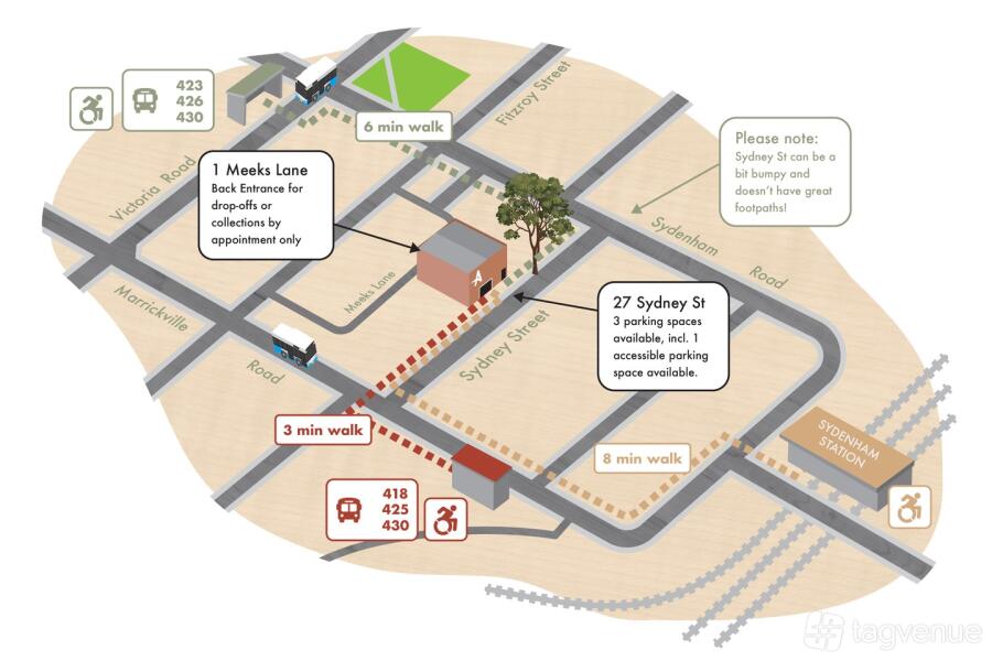 Among The Trees is located at 27 Sydney Street, in the Marrickville, Sydney district of Sydney.