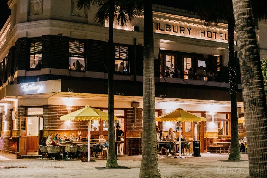 The Tilbury Hotel is located at 12-18 Nicholson Street, in the Woolloomooloo, Sydney district of Sydney.