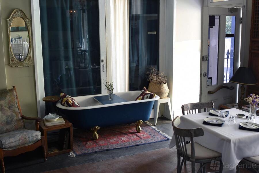Enjoy an organic tea or sip a glass of natural wine while comfortably relaxing in the bathtub. Bathtub? Yes, you heard right!
