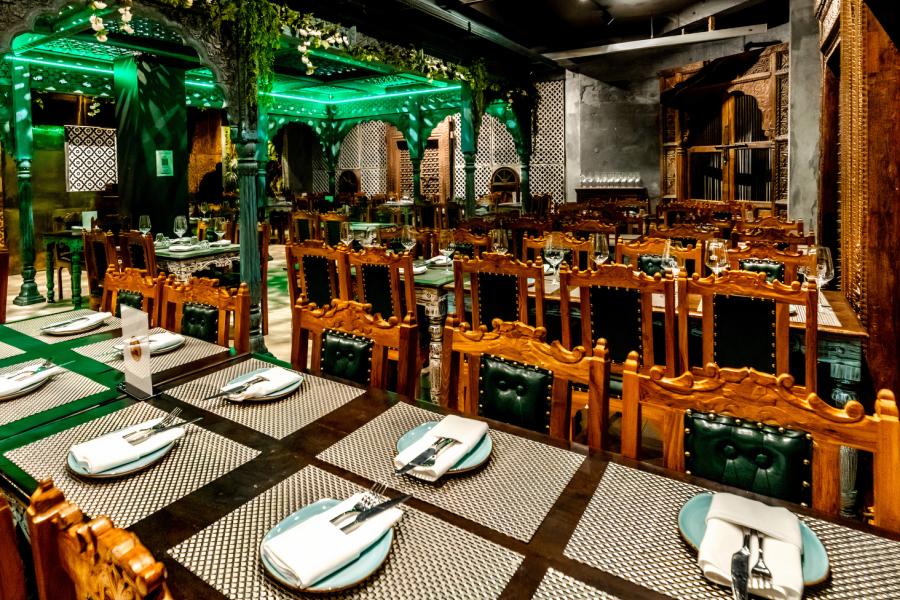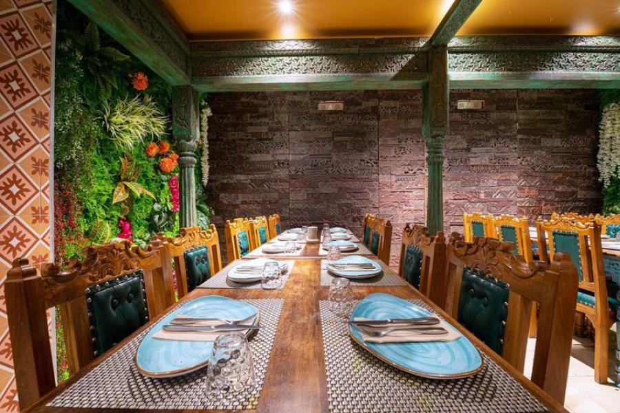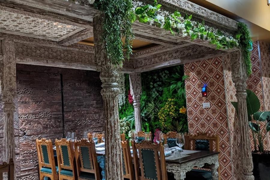 Our decor is a celebration of Indian culture, with intricately designed elements that transport you to the vibrant landscapes of India. The inside pergola adds a unique charm.