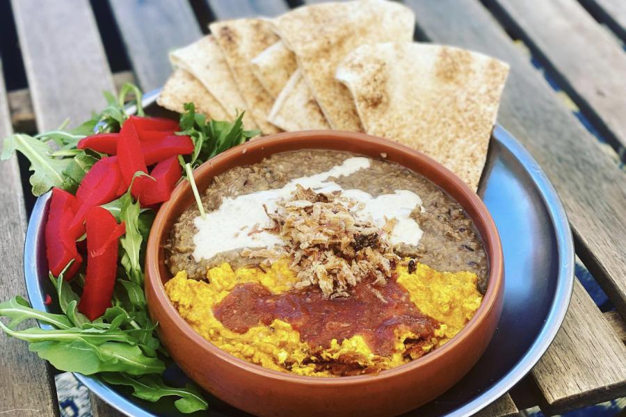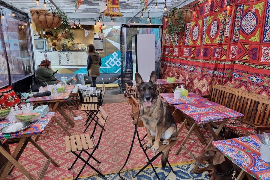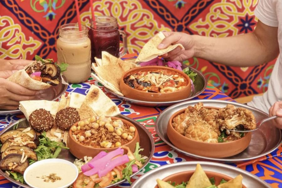 It's an inviting space where the architectural simplicity allows the vibrant, aromatic dishes to take center stage. The atmosphere is casual and warm, with decor that hints at its Egyptian roots, providing a comfortable setting that complements the communal ethos of the area.