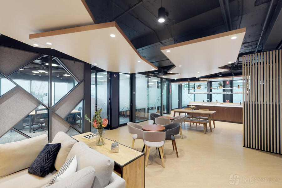 The business center features a sophisticated fit-out accommodating from 1 to 50+ desks, providing a variety of secure private offices, shared workspaces, a welcoming business lounge, boardroom, and meeting rooms, all designed to foster productivity. With enterprise-grade IT infrastructure and excellent soundproofing, Compass Offices at 141 Walker Street offers a conducive setting for corporates and professionals.