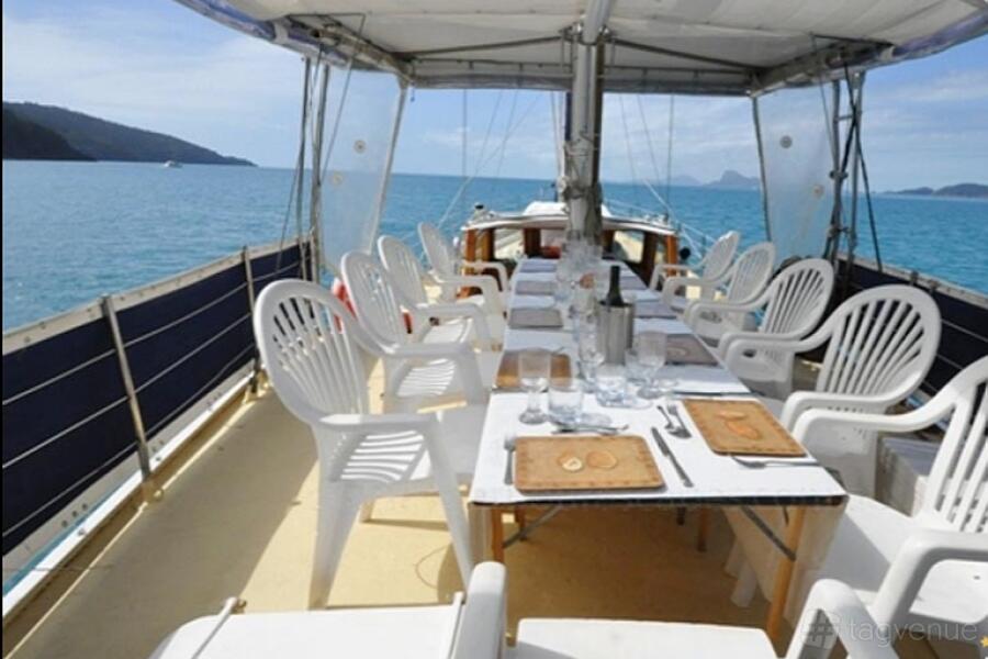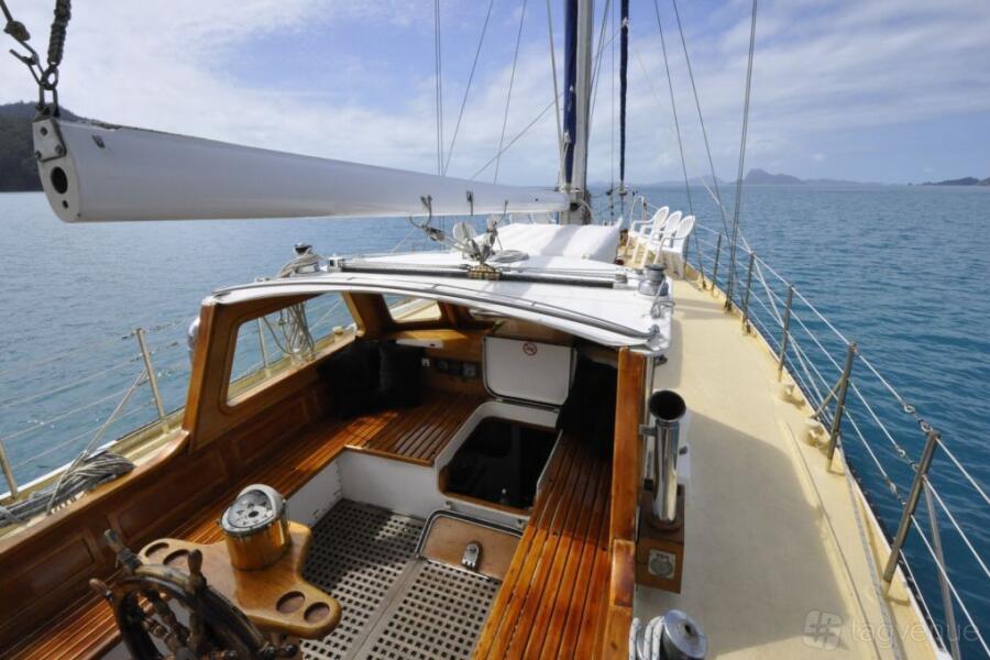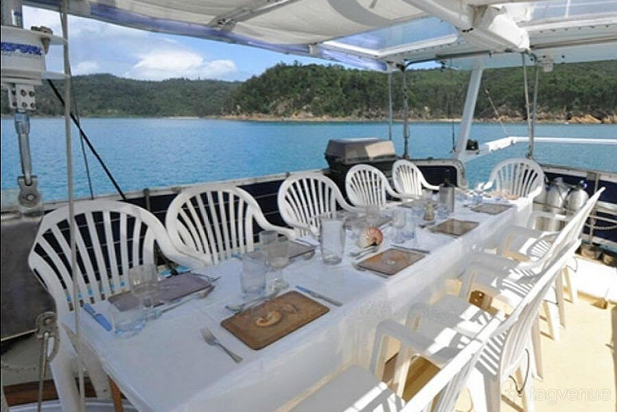 They engaged a naval architect to transform their ideas into a ship with a huge deck area that is just made for the perfect Sydney Harbour yacht charter experience.