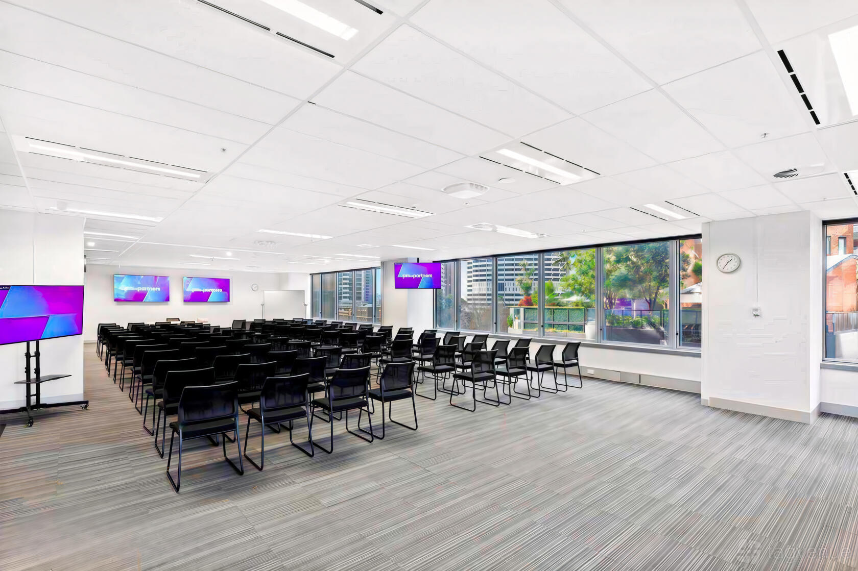 Each room is equipped with 75-inch television screens, secure networks and WiFi, whiteboards, flipcharts and video conference units to ensure your event runs smoothly and successfully. PM-Partners’ IT department will also be on-hand day or evening. Full catering of all meetings or events is available and a large kitchen/canteen is also available for use.
