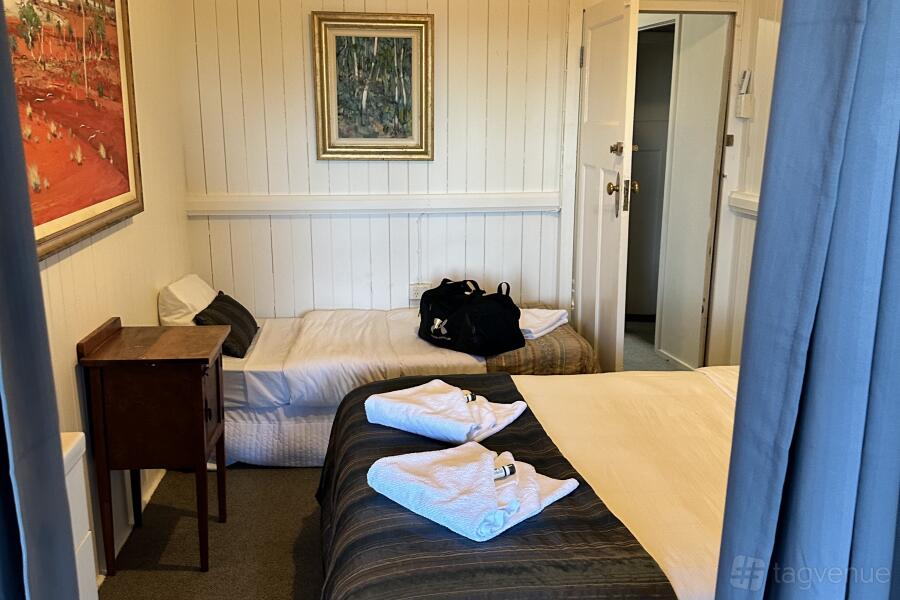 Our hotel is wheelchair accessible and offers free parking for all guests. Alongside our event spaces, we provide simple and comfortable accommodation with shared bathroom facilities. We're known for our generous meals, welcoming service, and a uniquely Australian setting enhanced by a bold collection of local art.