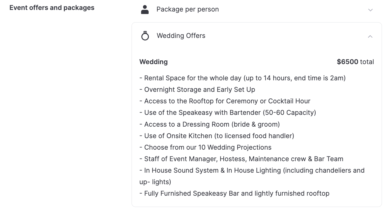 Venues that clearly show what’s included vs. what’s extra tend to attract better-fit enquiries and close faster.