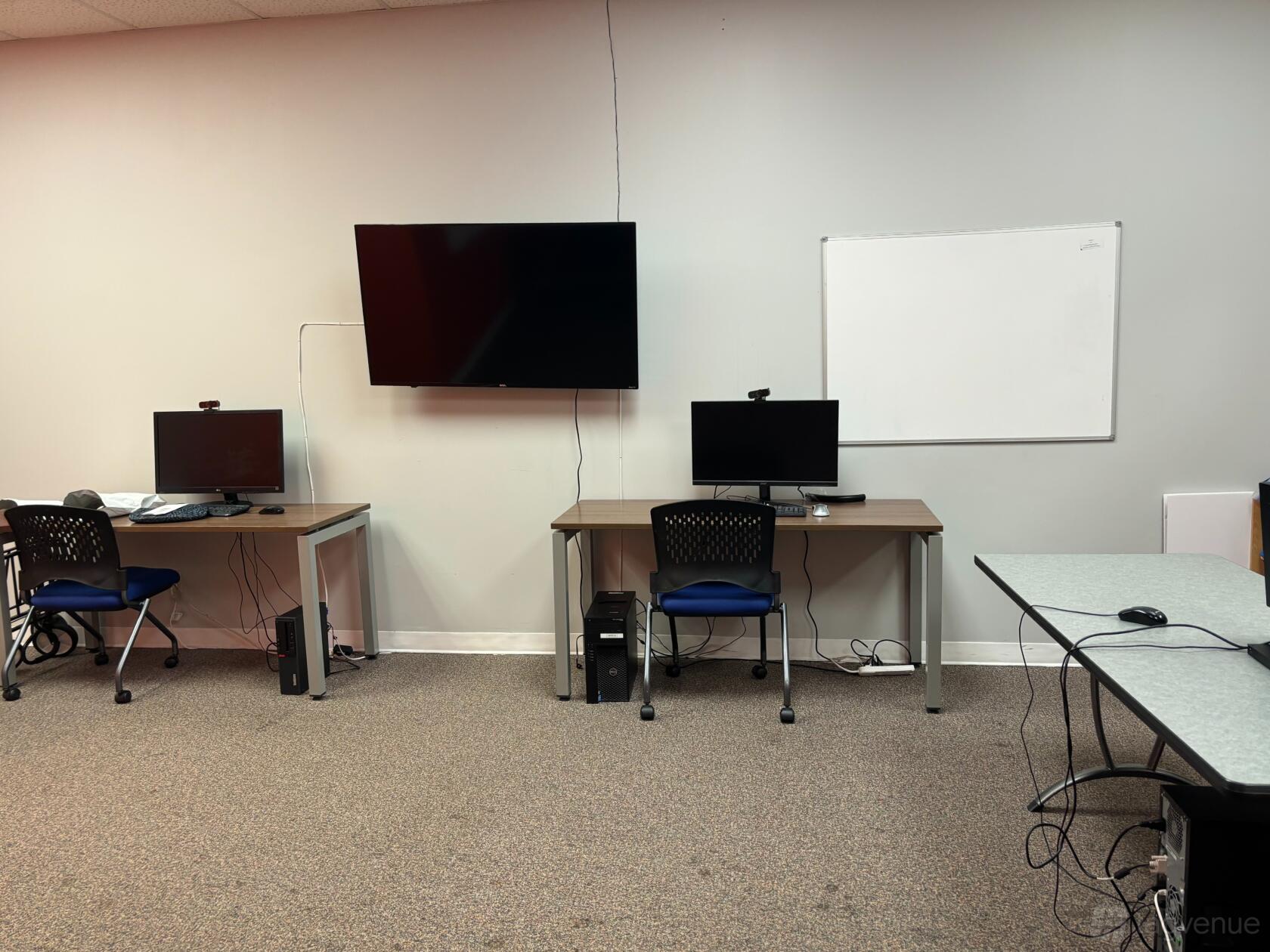 This co-working office space is ideal for hosting training sessions or for monthly rentals. The stations are equipped with computer setups and are ready for use.