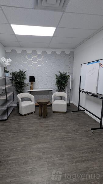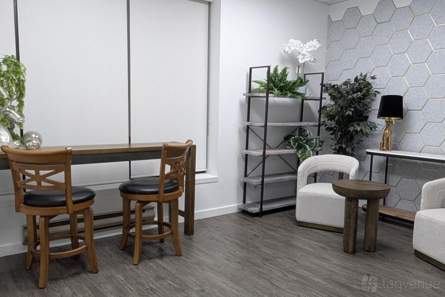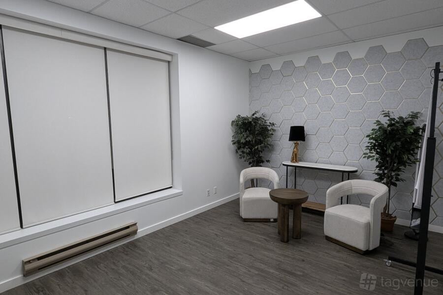 It is perfect for interviews, podcasts, and video blogs, and it offers a basic lighting setup included (bring your own equipment) in a quiet and professional atmosphere for high-quality recordings.