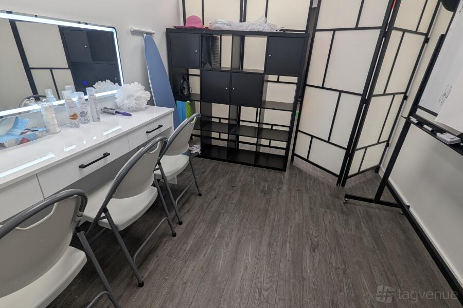 This 600 sq. ft. commercial studio is made for music, photo, video, meeting, and podcast productions, offering professional backdrops, studio lighting, and custom-made thematic background panels crafted in our in-house art studio (extra payment, order minimum 1 week before).