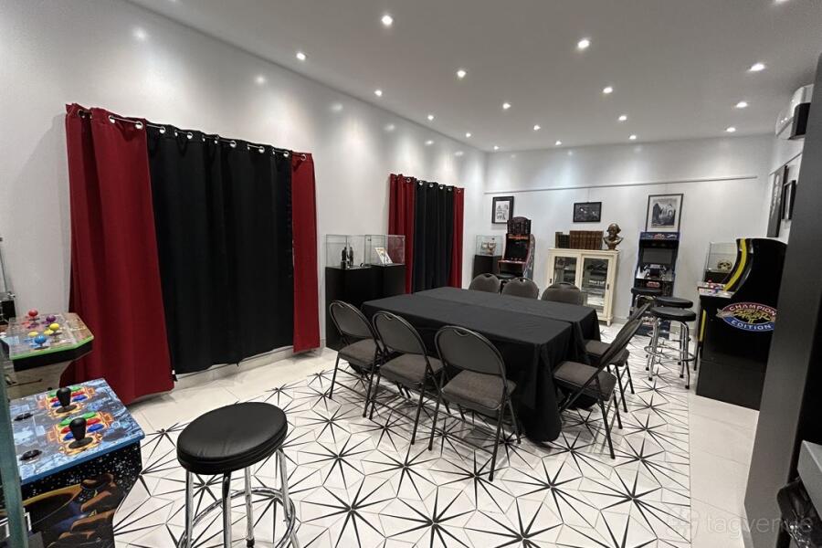 You may hang your own art (optional fee) or use the current exhibition. Arcade machines are available on request. Alcohol and food permits are included – bring your own food or hire a caterer.