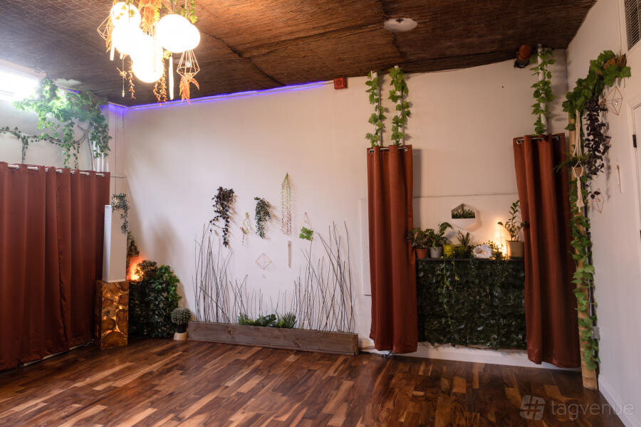 In addition to the features included in our Zen Den Room, we also offer private access to a 1800 square foot venue, a lounge area, and a full sound system. This expanded space is ideal for larger events, private gatherings, ceremonies, filming, concerts, and more.
