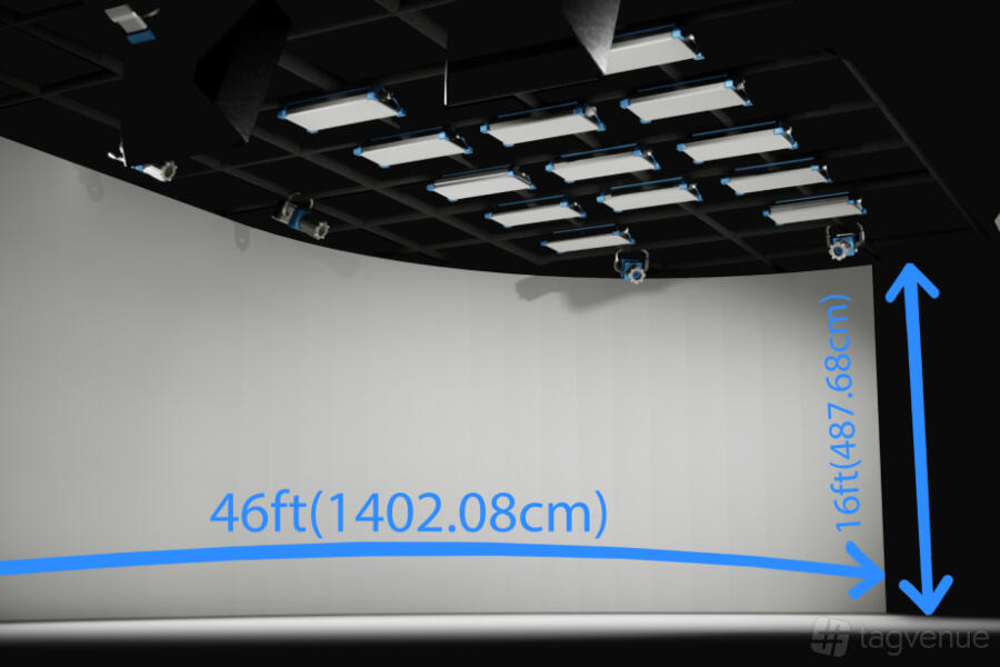 Our Cyclorama Stage is also equipped with Arri LED lighting grid, which includes 4 Orbiters, 1 (S30-C) and 15 (S60-C) Skypanels controlled by GrandMA3. Lighting grid is included in rental price.