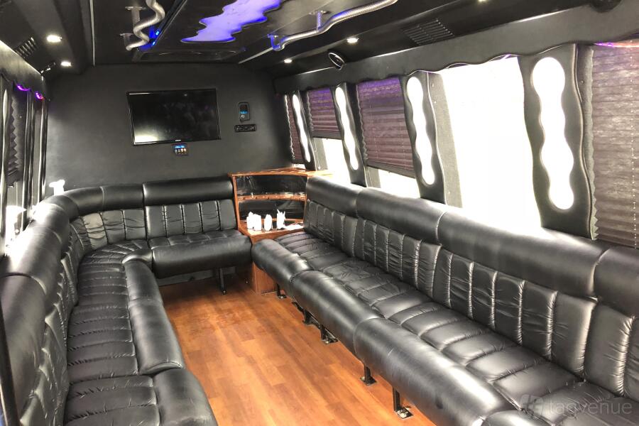 Entertainment is top-notch with a state-of-the-art sound system and multiple flat-screen TVs. With room for up to 38 passengers, this party bus is ideal for large gatherings, from birthdays to bachelorettes.