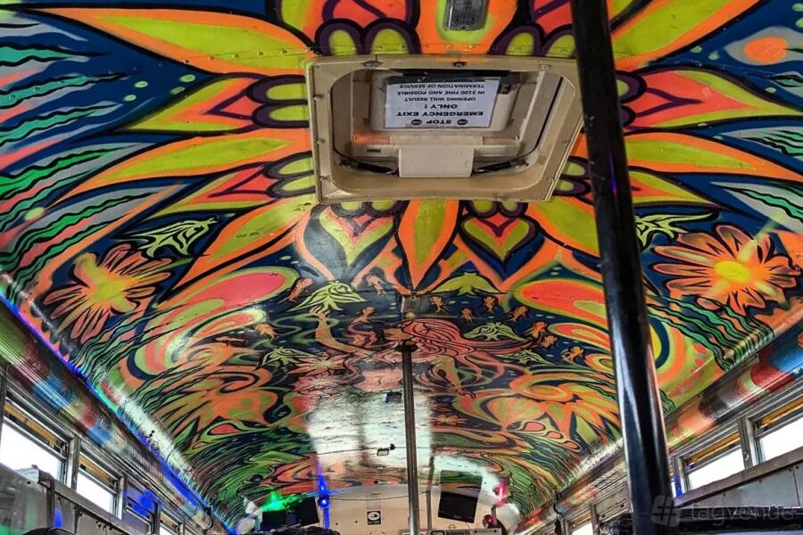 As you step inside, you will be greeted with a vibrant and lively atmosphere created by the colorful interior. The party bus comes alive with our Glow Ceiling Art, casting a glow that sets the stage for an unforgettable celebration. The ambiance is further enhanced by our premium sound system, ensuring that every moment is accompanied by the perfect soundtrack.