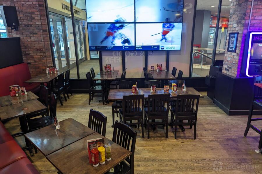 Accommodating up to 120 guests, our 120-chair capacity includes comfortable booth seating, ensuring a cozy yet vibrant dining experience. The high ceiling creates an airy atmosphere, while the strategically placed 13 TVs cater to entertainment needs throughout the venue.