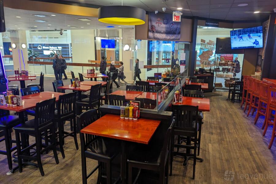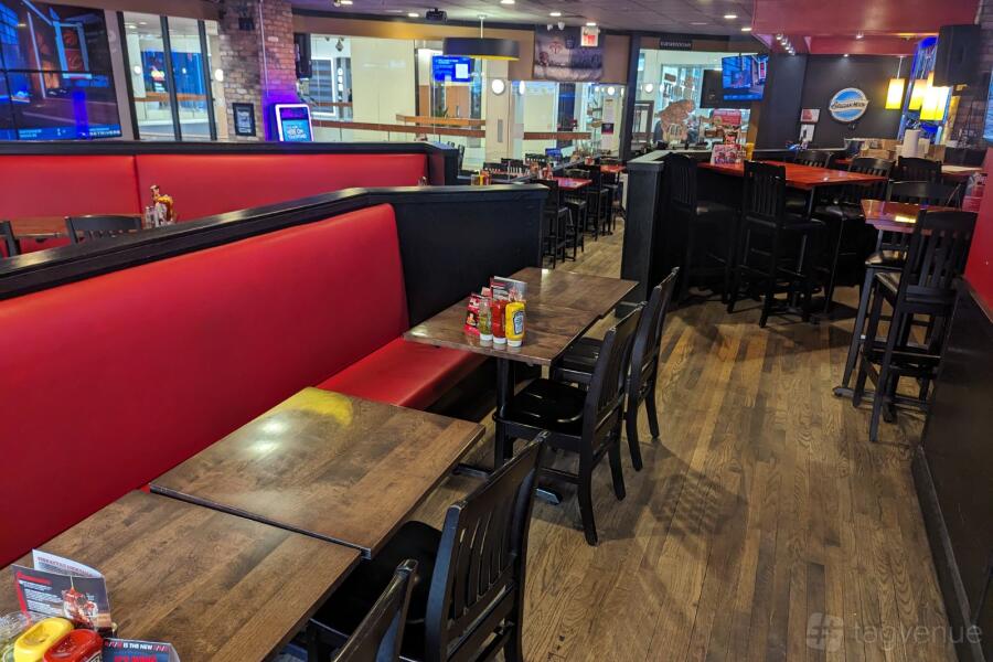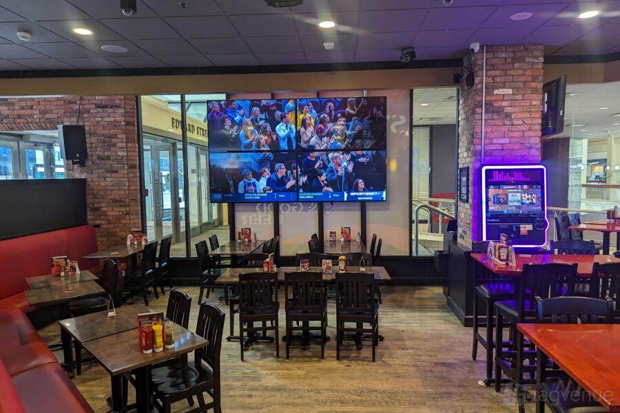 Accommodating up to 120 guests, our 120-chair capacity includes comfortable booth seating, ensuring a cozy yet vibrant dining experience. The high ceiling creates an airy atmosphere, while the strategically placed 13 TVs cater to entertainment needs throughout the venue.