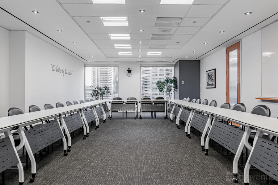 This 24-person training room boasts beautiful views of Lake Ontario. Accompanied by plenty of natural light, this space is great for full-day training or meetings.