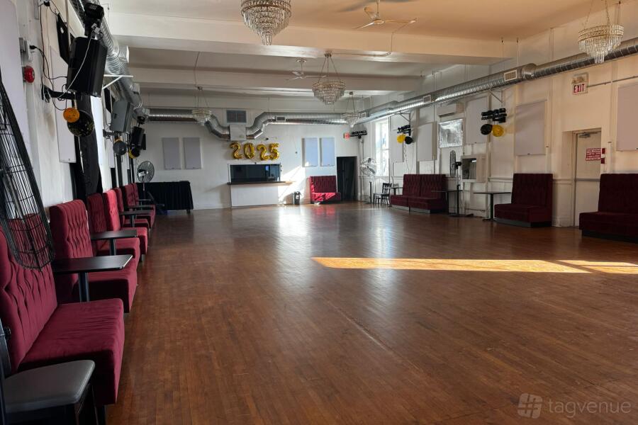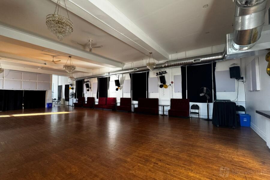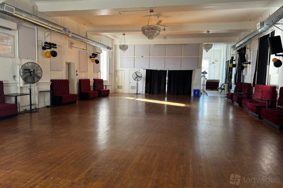 The hall is 3,500 square feet with 17-foot-high ceilings and new sprung dance floors. It has heating and air conditioning, great soundproofing, and a surround sound system. The digital mixer has 30 channels, perfect for live music with up to two bands at the same time.