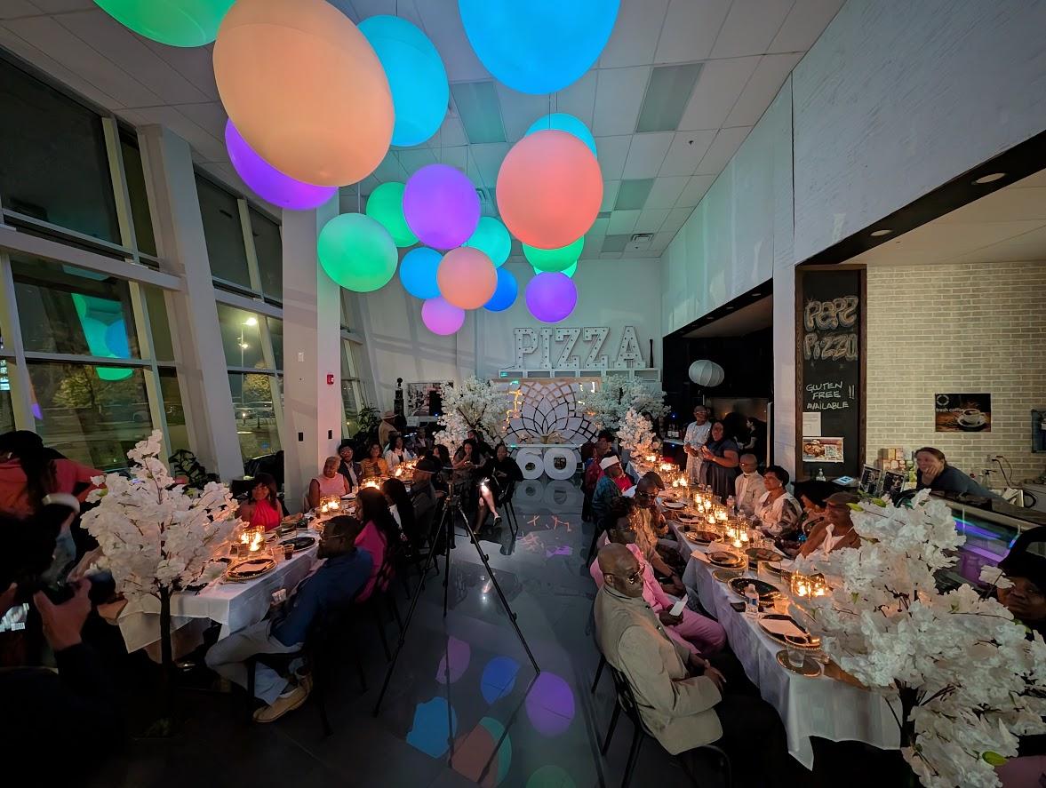 The venue appears to be situated in a modern commercial development with good accessibility and visibility. The restaurant's reputation for quality cuisine enhances the appeal of this event space.