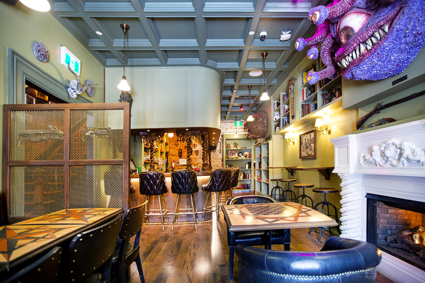 Toronto's geekiest bar! Opened in late 2018 in an elegant Church St mansion, it includes a sanity-shattering array of theme rooms, secret doors, catacombs, cyberpunk bars, glowing, bubbling cocktails, randomly-generated burgers and, oh yeah, tentacles.