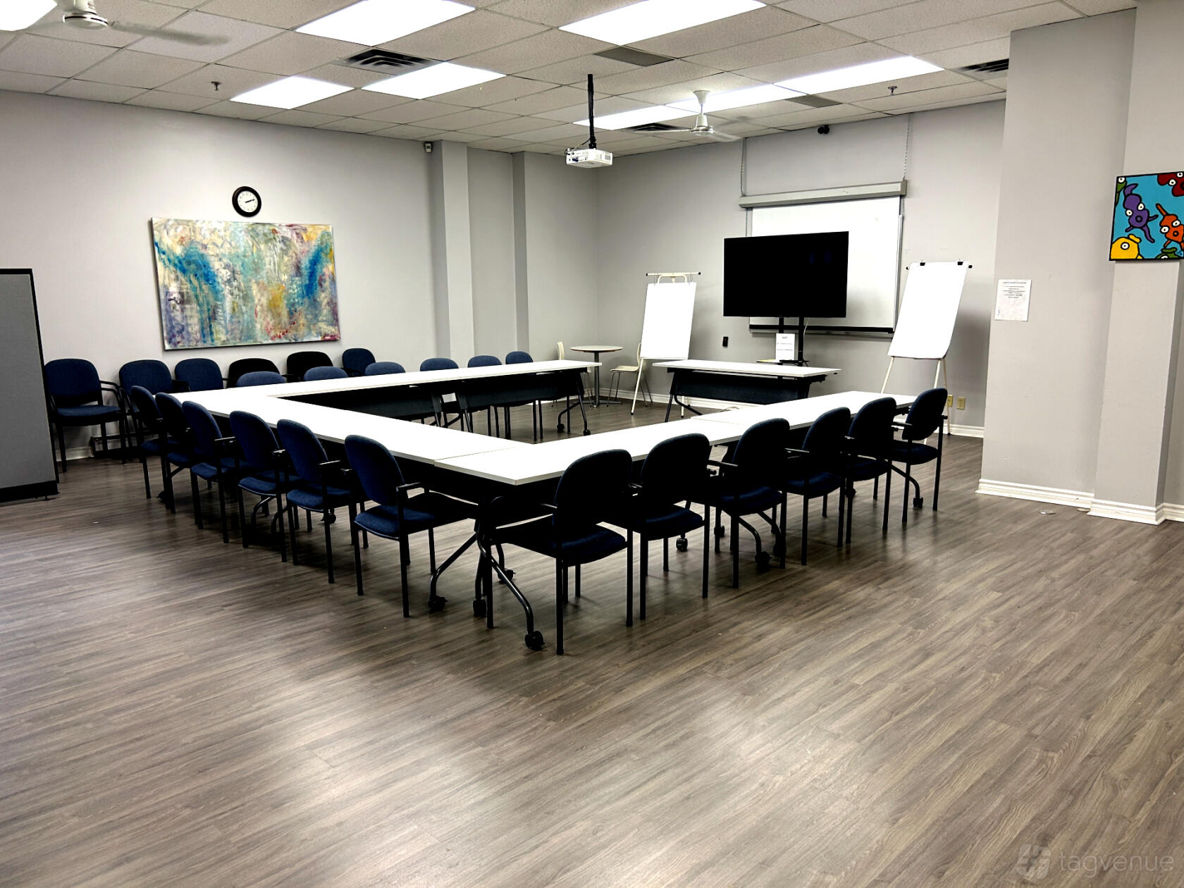 Step into our Modern Meeting and Event Space — a bright, open, and pillar-free room designed to make every gathering seamless and inspiring. Perfect for corporate meetings, strategy sessions, workshops, and small events, this versatile venue comfortably accommodates up to 40 guests in boardroom, theatre, or classroom layouts.