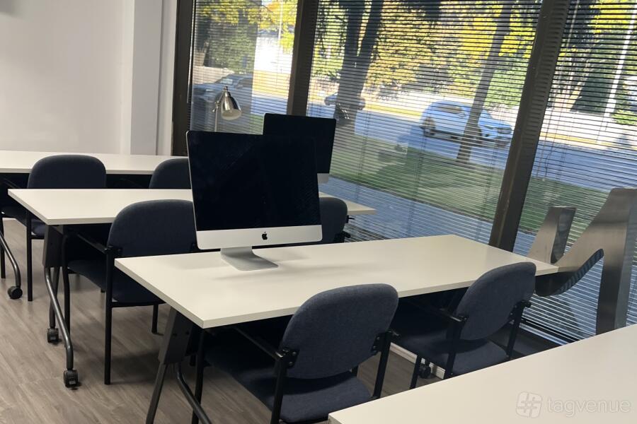 The space is fully equipped with a ceiling-mounted projector, large flat-screen TV, whiteboard, flipchart, and high-speed Wi-Fi to keep your team connected and productive. Air-conditioned comfort, natural light, and flexible furniture arrangements make it easy to customize the setup for your needs.