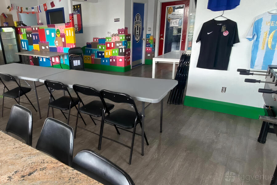 The 2nd Floor at GTA Soccer Club & Lounge in Vaughan is a private party room spanning over 1,000 square feet of open-concept space. The main attraction is The Unique Man Cave Theme Walls & features a large Kitchen quartz island, perfect for hosting and catering.