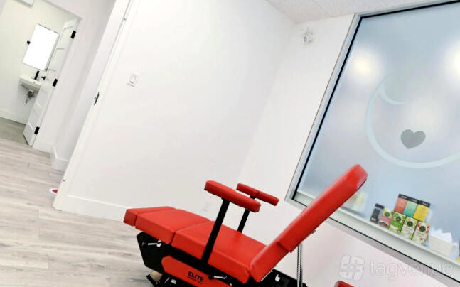 This room includes a desk and chair, perfect for office work or Zoom meetings. There are also 2 treatment tables. One is a Hybrid Chiropractor table with 2 drops. This table can also be converted into a chair for acupuncture or other seated treatments. There is also an electric massage table.