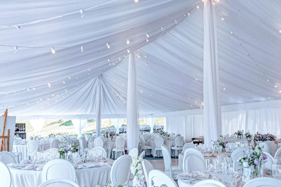 The venue is situated on a unique 100-acre estate that boasts hidden waterfalls and serene streams, creating a picturesque backdrop for any event. The family-grown vineyard, located in the fertile, rolling hills of the Caledon Valley, features over 100 vines. This adds a touch of rustic charm and a sense of exclusivity to the estate, making it an ideal location for those seeking a blend of natural beauty and sophisticated ambiance.
